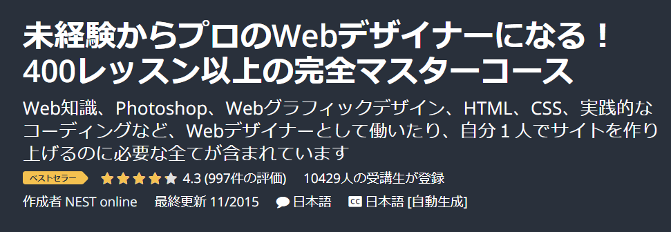 ちなみにですが、非デザイナー(わたしのこと)がPhotoshopを学ぶにはUdemy![]()